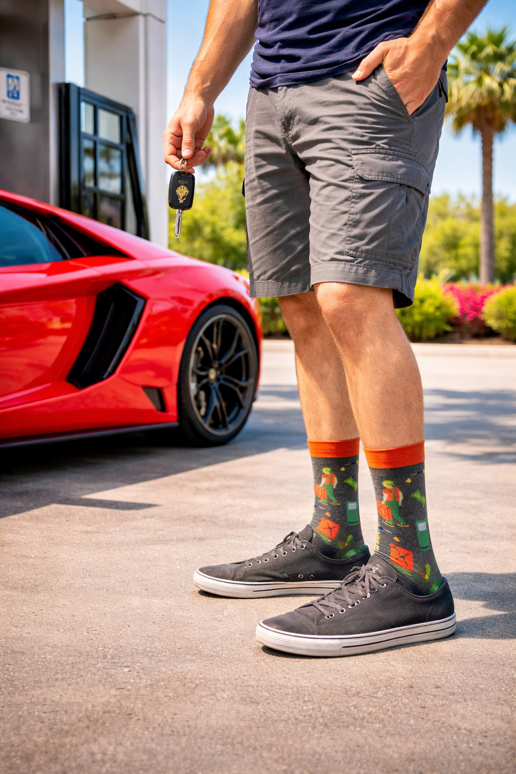Dodaj trochę motoryzacyjnego stylu do swojej garderoby! Skarpety Krebo z motywem stacji benzynowej to idealny wybór dla fanów motoryzacji, podróży i oryginalnych wzorów.